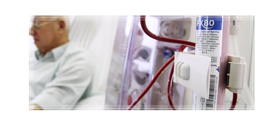 몸속의 걸러지지 않은 혈액을 빼내어 혈액을 깨끗하게 걸러주는 인공투석기, 인공투석기를 통과해 깨끗해진 혈액이 다시 몸속으로 들어가게 됩니다. 투석기계에는 여러가지 측정기, 경보기 등이 설치되어 있어 투석을 하는 4시간동안 안전하고 효과적인 투석이 이루어 집니다. 치료시간은 환자의 건강 상태에 따라 조절되는데, 표준혈액투석은 1주일에 3회로 4시간, 총 12시간 투석합니다. |